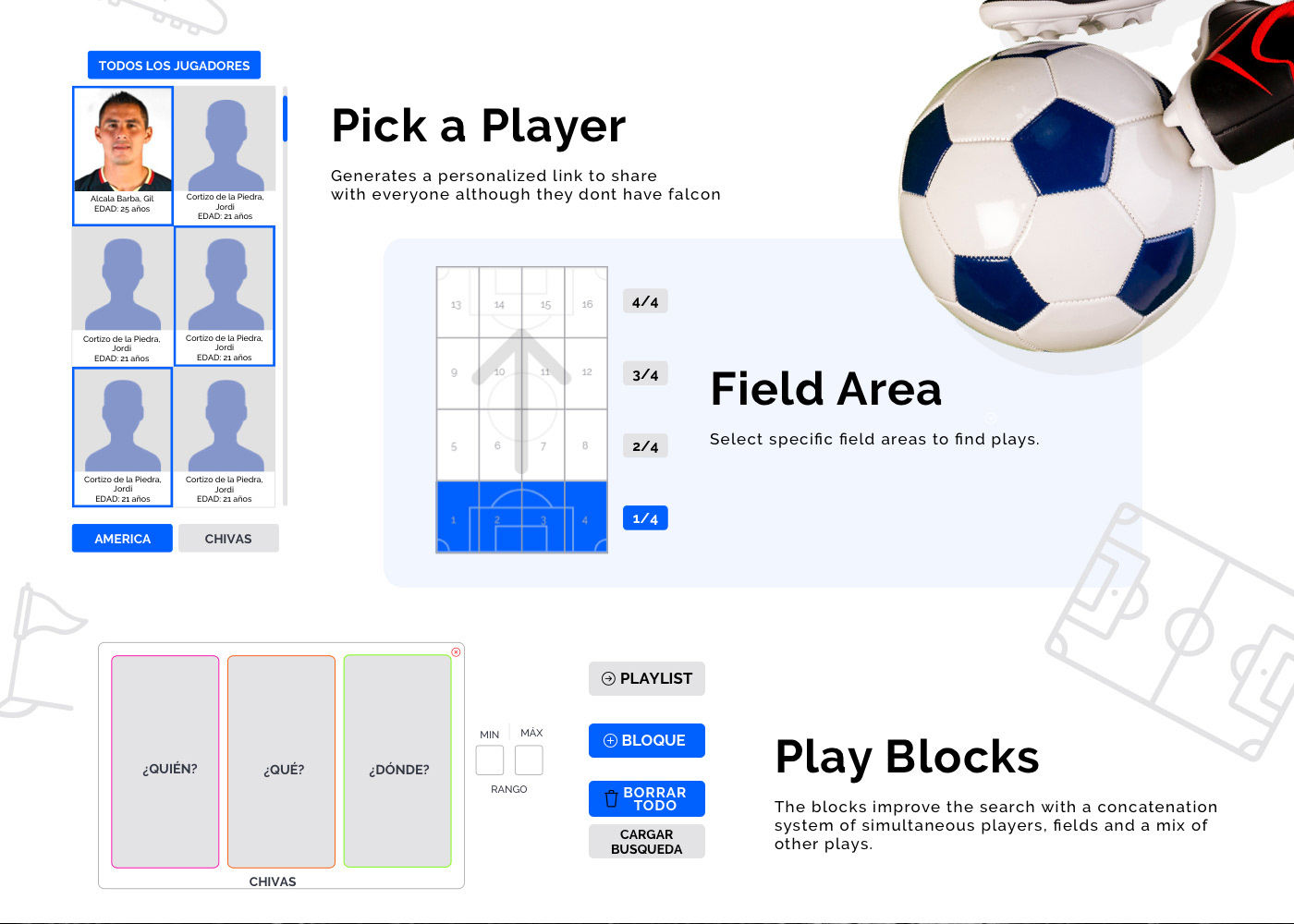 The rule concatenation system became the heart of Falcon—coaches could combine up to three conditions to analyze tactical patterns, but the interface had to make complex Boolean logic feel natural. I designed interfaces where impossible combinations were prevented automatically, respecting soccer's natural flow.